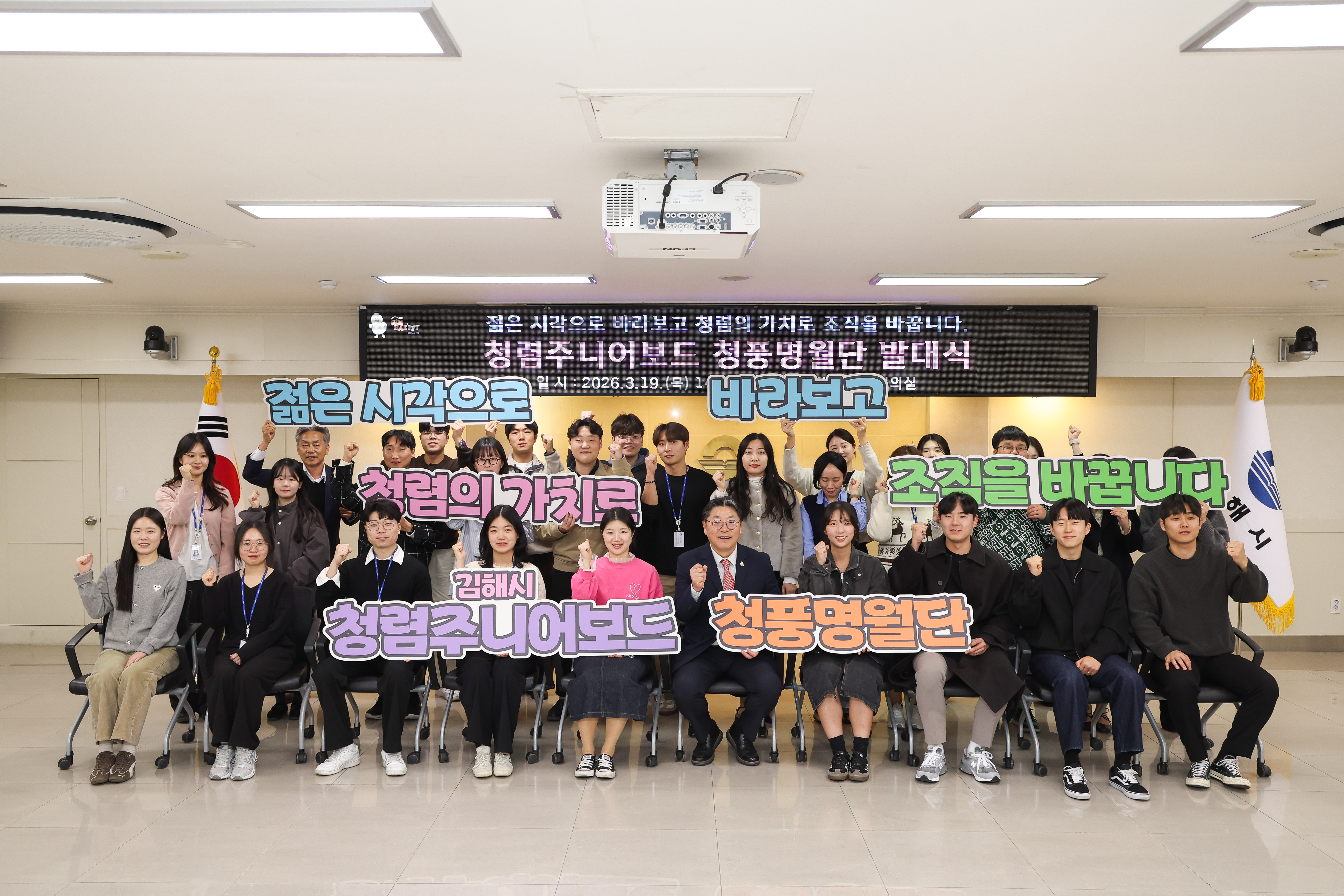 김해시는 19일 저연차 청년세대 공무원 30여 명으로 구성된 청렴 주니어보드(청년중역회의) ‘청풍명월단’ 발대식을 개최했다. 이들은 새로운 시각의 조직문화 개선과 청렴 가치 확산을 위한 본격적인 활동을 시작한다.