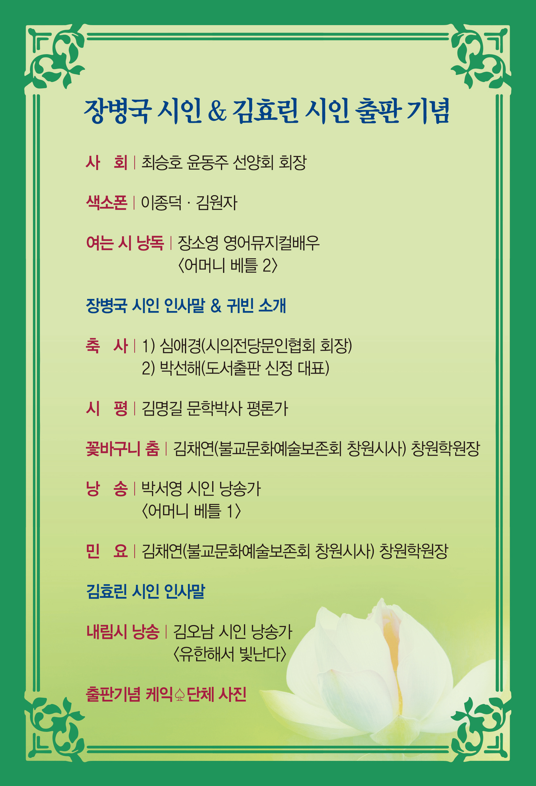 장병국 시인 & 김효린 시인 출판 기념회 소식
