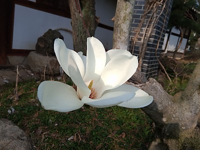 오소후 사진作흰 틈가지 끝에 난작은 흰 개구부오늘봄 한 마리 걸어나왔다 -오소후