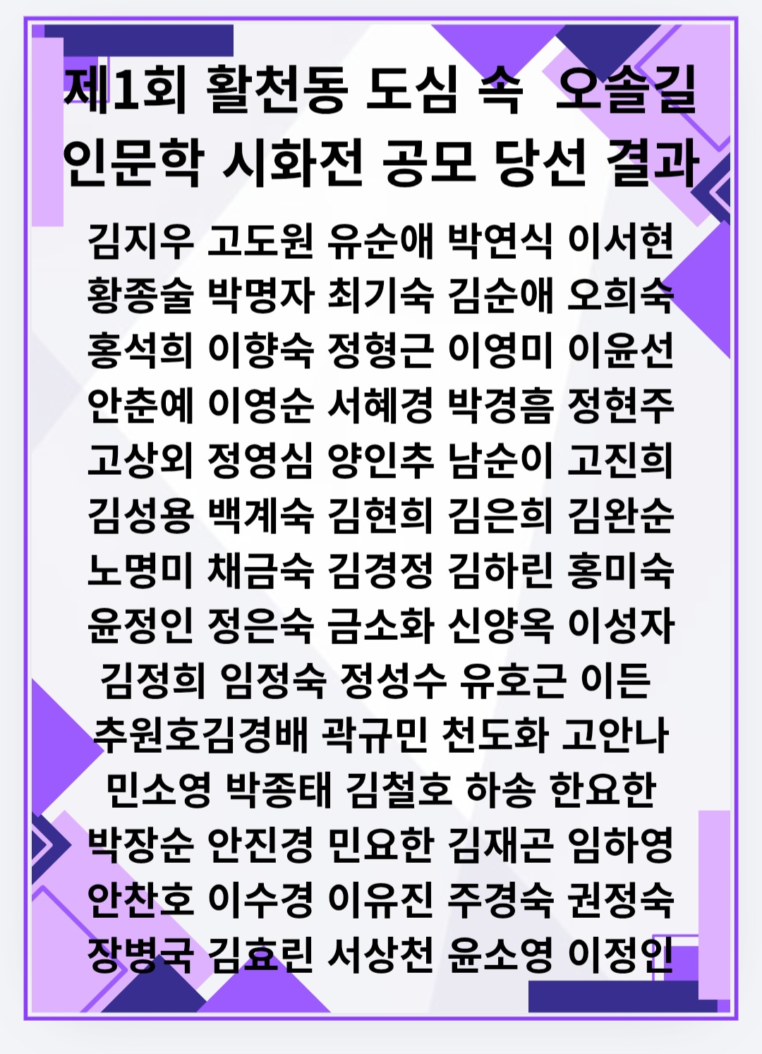 2026년 제1회 김해 활천동 도심 속 오솔길 인문학 시화전 당선 결과