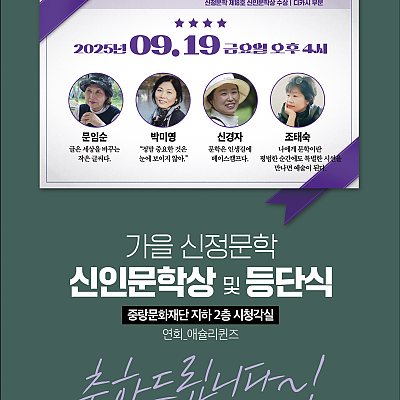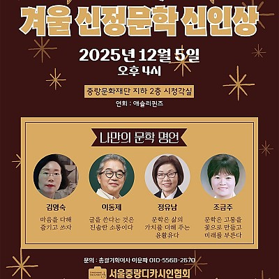 신정문학 신인상 사상식 * 2025년 12월 5일 오후 4시 * 중랑문화재단 2층 시청각실