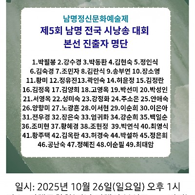2025년 남명 전국 시낭송 대회 본선 진출자 명단