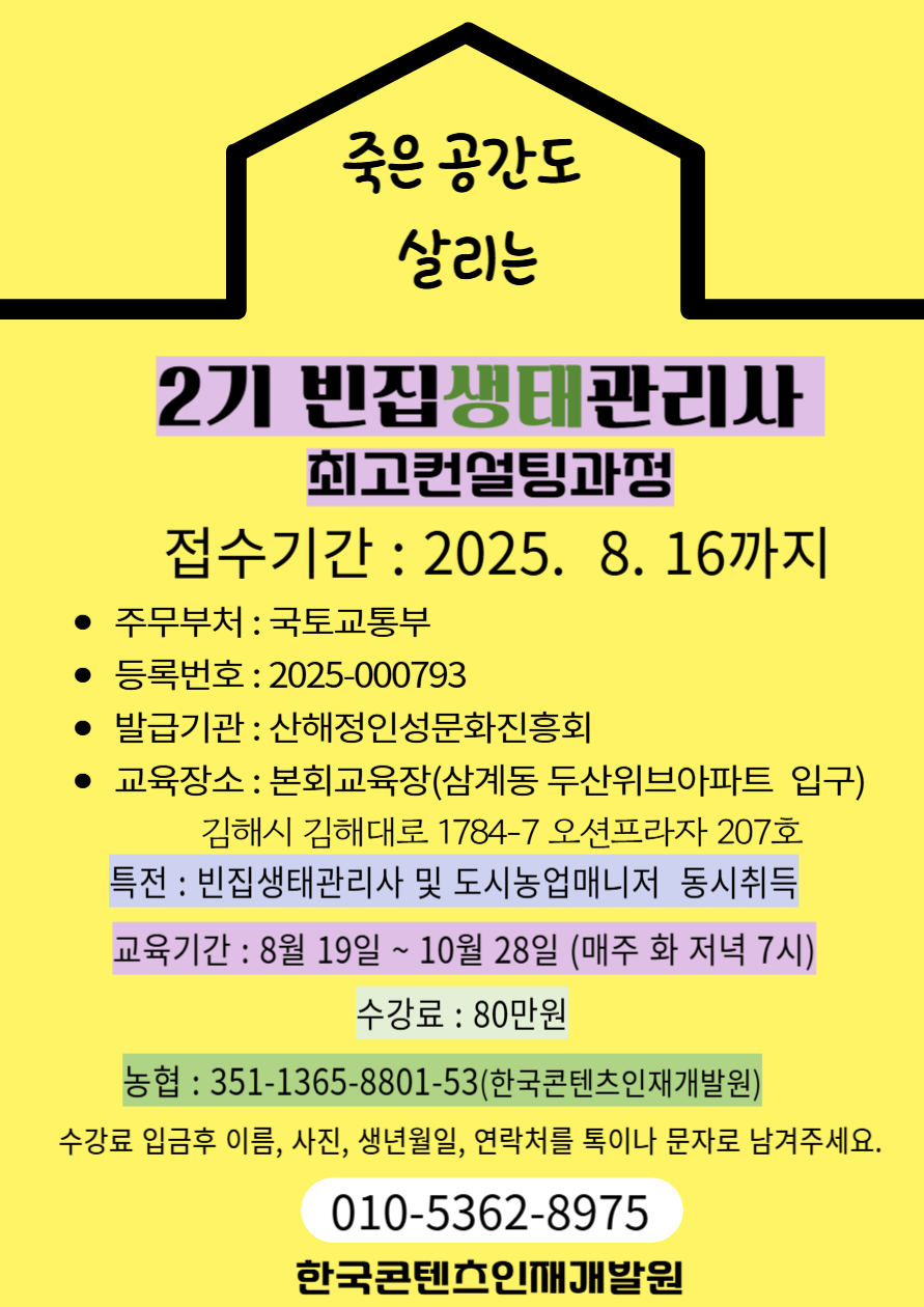 현실적인 문제를 다각적으로 해결하기 위해 2기 빈집생태관리사 수강생도 모집하고 있는데, 빈집에 대한 관심도가 높아져 자격증 취득에 대한 문의가 쇄도하고 있다