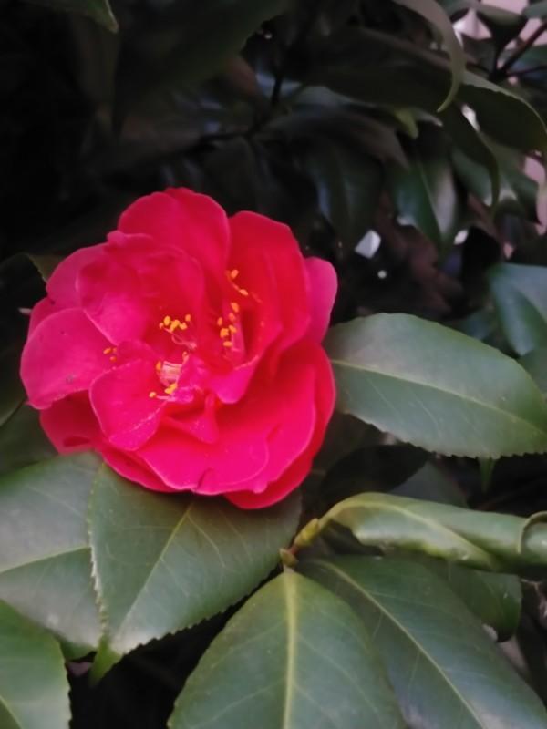 토종 여섯겹 빨강 홑동백을 어느새