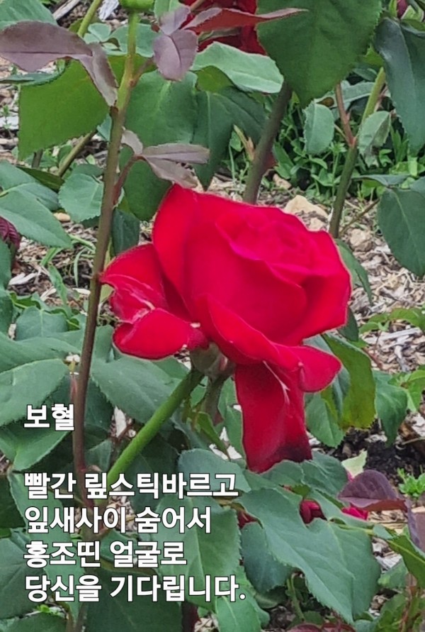 빨간 맆스틱 바르고 홍조띤 얼굴로 기다리는 그대 장미