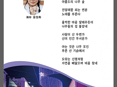 어느날 海珍 윤정화 인생은 어느날 태어나 눈의 꽃처럼 녹는다 또 다른 인연도 불현듯 찾아와 가슴에 불을 지핀다 오감 으로 자극하면 세상이 네모나케 보이고 육감 으로 손질하면 세상이…