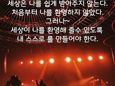 모든 일에 노력이 뒷바침 어긋날 시 애곡한다 어느날 갑자기 자초지종 만무하리 가슴으로 힘을 달성한 사랑 고결한 미소 운명은 문을 두드리듯이 만남은 신성을 부르듯이 새로운 흥망이 되…