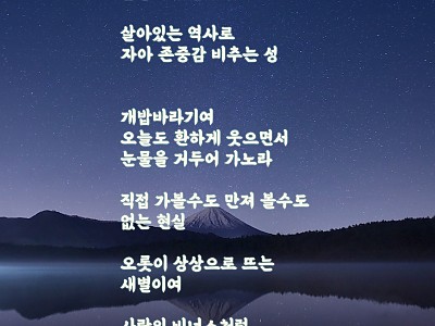 하늘애도 慧眞 윤정화 하늘이 파랗게 보이면 건강하고 행복한 것 슬플땐 곱게 화장하듯이 하얗게 느껴진다 부서지는 파도처럼 시린 몸 편안하게 만사를 제친다 날아오르는 학 어둠속에서 화…