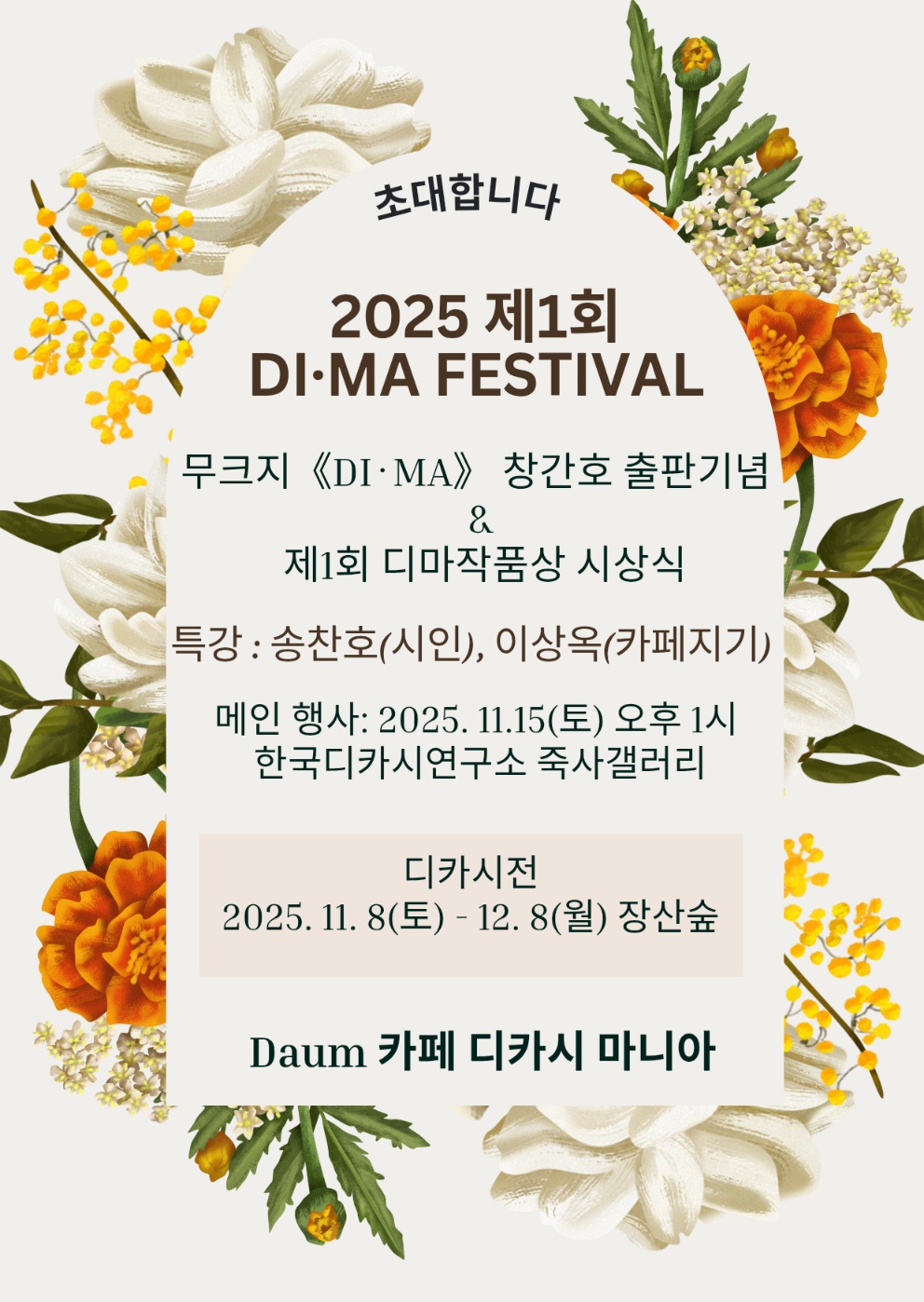 2004년에 개설한 국내 최초의 디카시 온라인 커뮤니티인 다음 카페 '디카시 마니아(DI·MA)'가 창립 21주년을 맞아 2025 1DI·MA FESTIVAL을 개최한다.