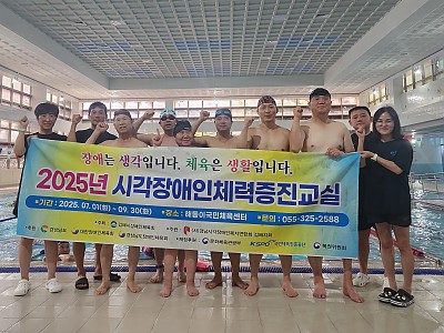 해동이국민체육센터 & 경남 시각장애인 복지연합회 김해지회 연계 프로그램 운영 - "시각장애인 맞춤형 수영교실로 건강‧자신감 높인다" - 김해시도시개발공사가 운영하는 해동이국민체육센…