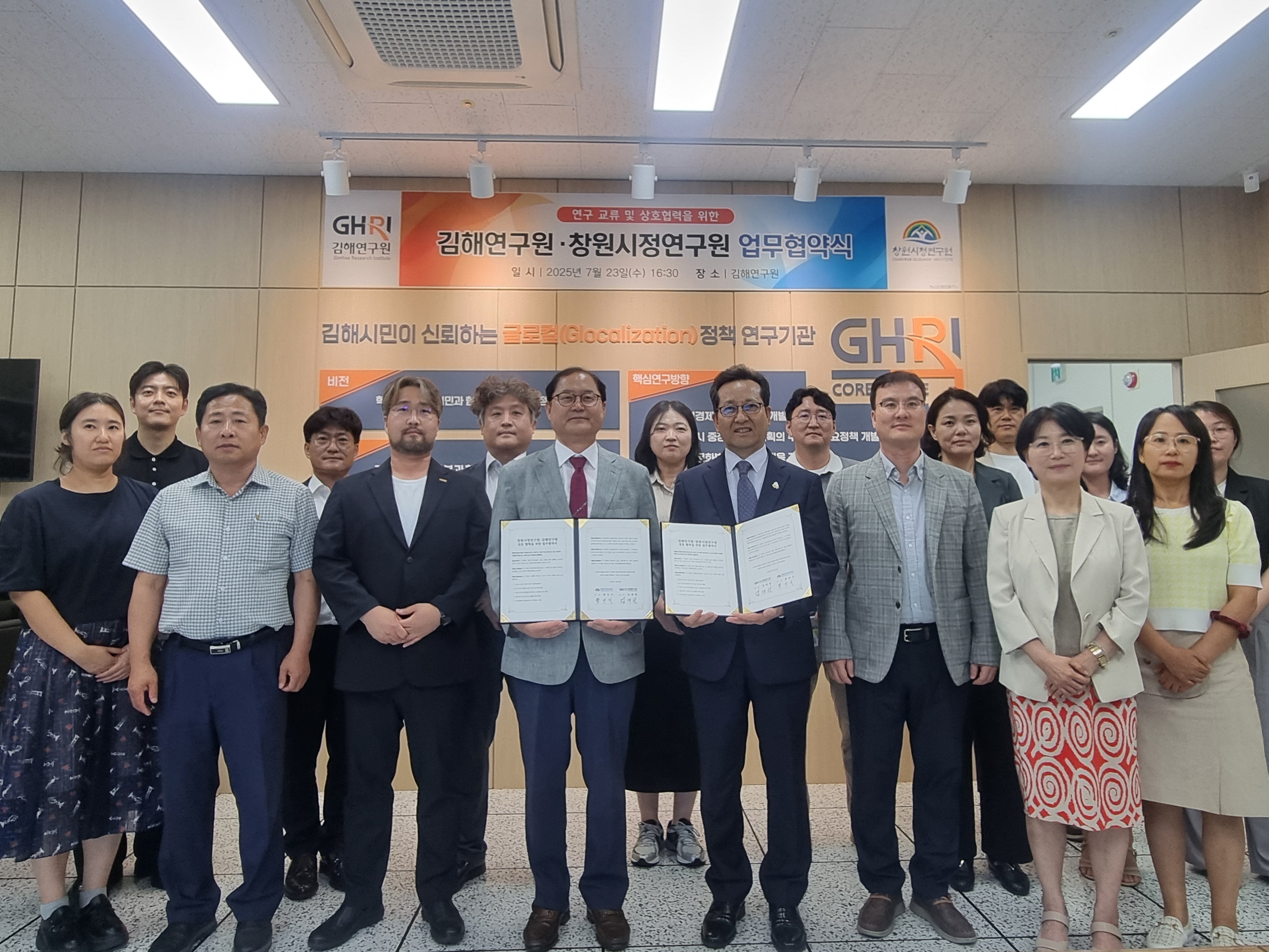 김해연구원은 지난 23일 김해연구원에서 창원시정연구원과 지역정책 분야 연구 협력 및 인적 교류 활성화를 위한 업무 협약을 체결했다.
