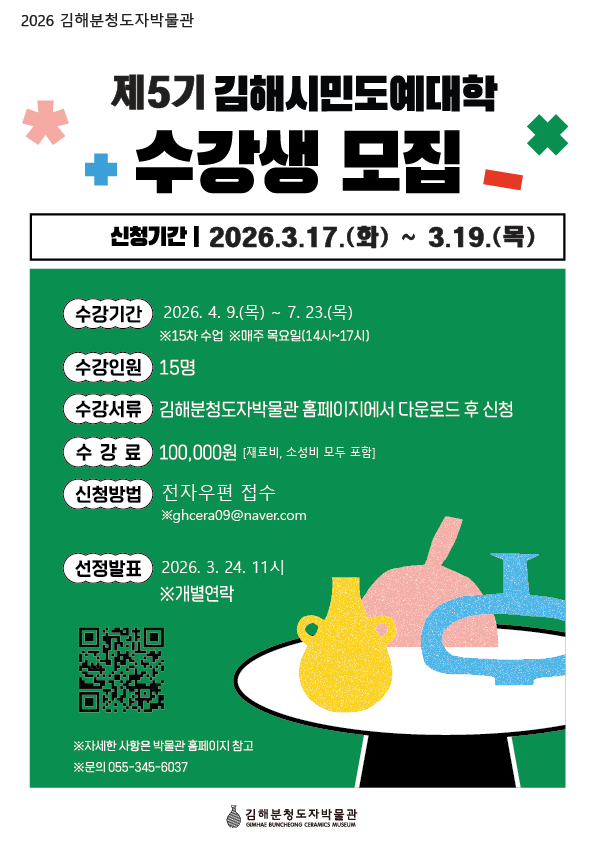 김해분청도자박물관 ‘제5기 김해시민도예대학’ 수강생 모집