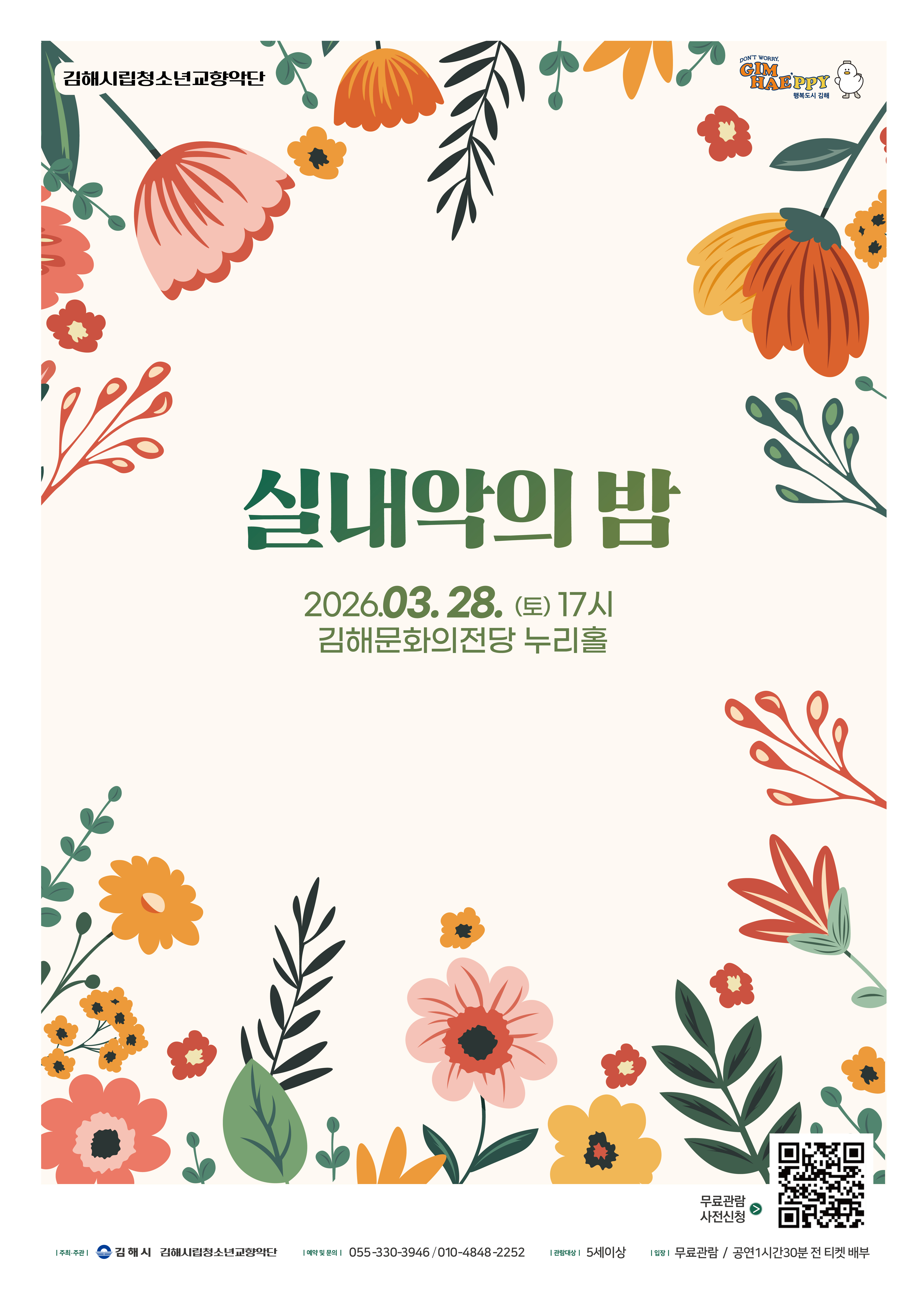 김해시립청소년교향악단은 오는 28일 오후 5시 김해문화의전당 누리홀에서 실내악 연주회 「실내악의 밤」을 개최한다.