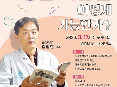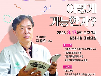 제353회 김해시 시민교양강좌, ‘법의학자’ 김장한 교수 초청- “좋은 죽음은 어떻게 가능한가?” - 김해시는 3월 17일(금) 오후 3시 김해시청 대회의실에서 법의학자 김장한 교…