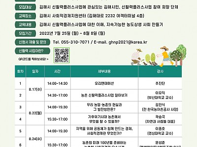 로컬푸드와 도농상생에 관심이 있는 김해시민을 모십니다!김해시 농촌 신활력플러스사업 액션그룹 모집 김해시(시장 홍태용)는 ‘농촌-도시가 함께 번영하는 사람중심공동체, 김해’를 만들기…