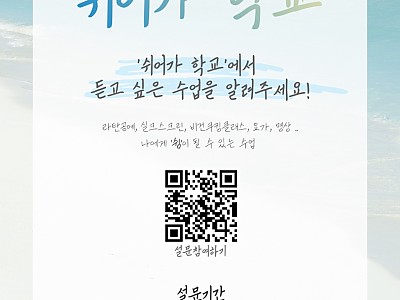 문화도시김해, ‘쉬어가학교’ 수업 개설 수요조사7월 7일~21일, 하루수업(원데이클래스) 개설 위해 시민의견 수렴 ▲ ‘쉬어가학교’ 설문조사 포스터(재)김해문화재단 김해문화도시센터…