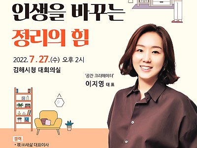 제351회 김해시 시민교양강좌,‘공간 크리에이터 ’이지영 대표 초청- “적당한 삶, 인생을 바꾸는 정리의 힘” - 김해시(시장 홍태용)는 오는 27일(수) 오후 2시 김해시청 대회…