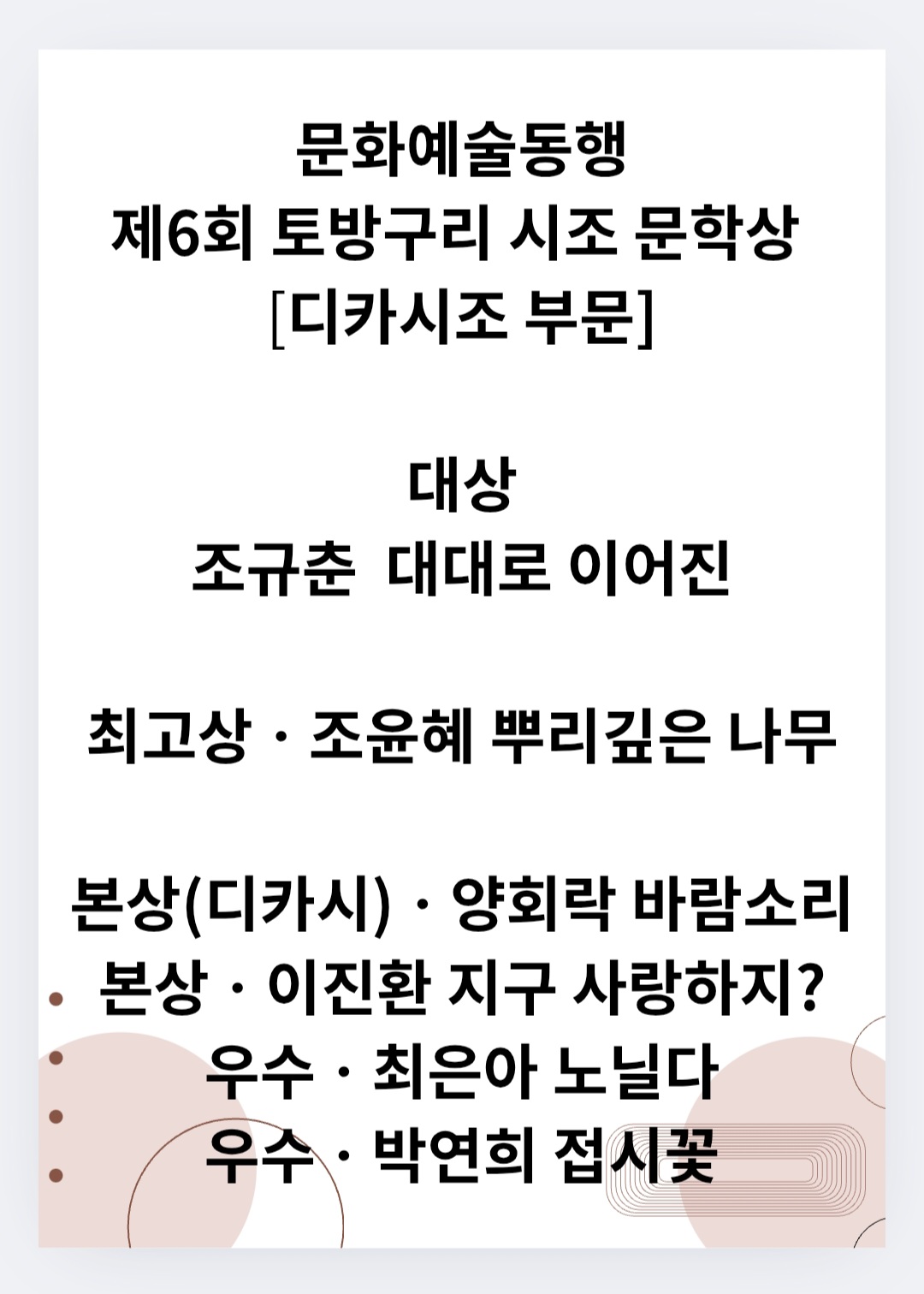 문화예술동행 * 제6회 토방구리 시조 문학상 당선작