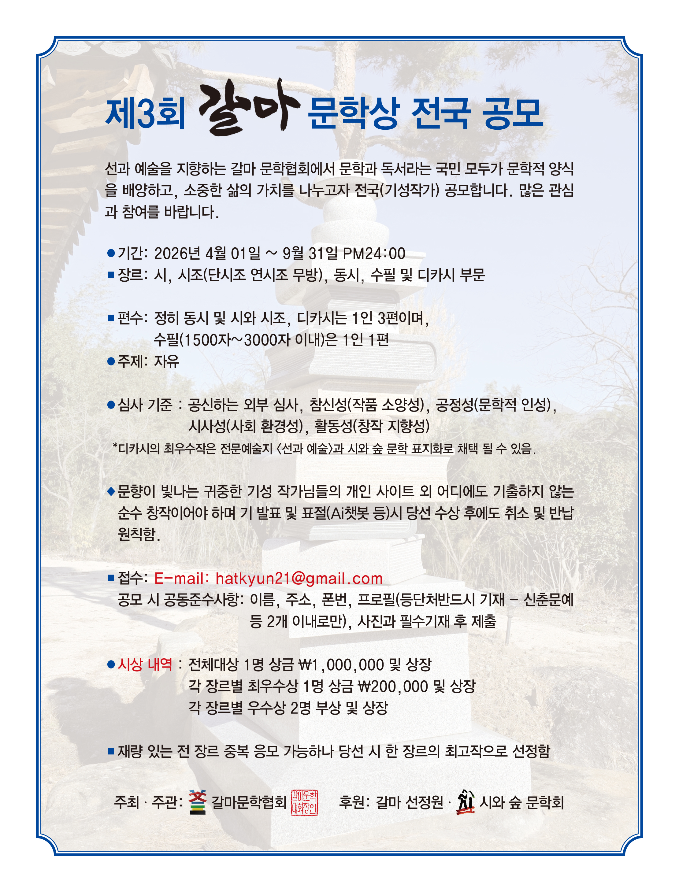 주최 · 주관: 갈마문학협회 후원: 갈마 선정원 · 시와 숲 문학회