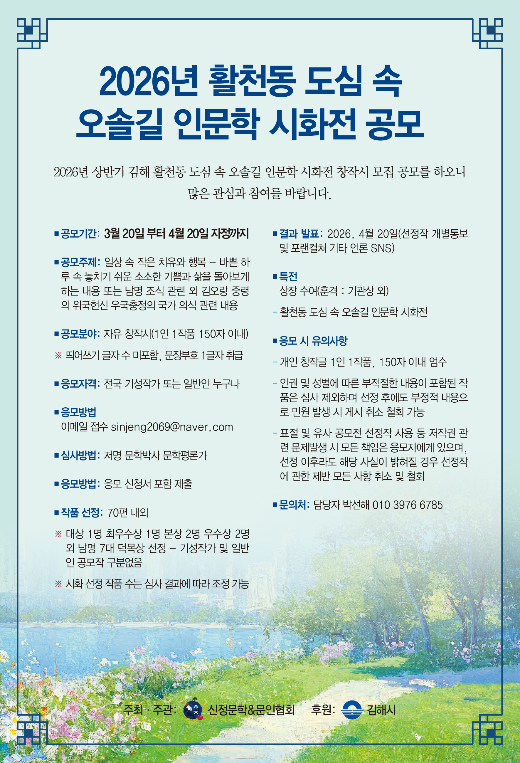 2026년 상반기 김해 활천동 도심 속 오솔길 인문학 창작시 모집 공모를